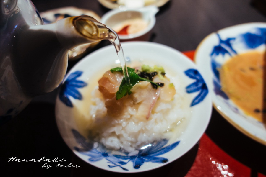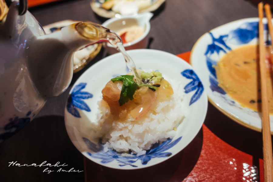 生食魚肉有著脆彈的口感,沾著醬汁的魚片配著飯的香甜就足夠吃掉一碗飯,下一碗飯留給淋上茶湯看著魚片慢慢變色的茶泡飯。