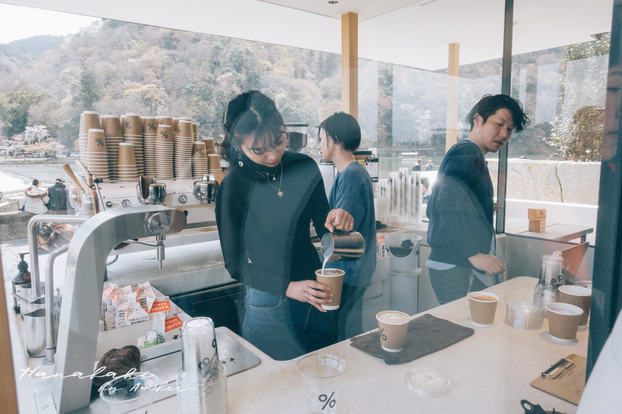 嵐山另一個排隊名店大概就非% Arabica Kyoto Arashiyama咖啡館莫屬了!因為咖啡比賽獲勝而成為熱門討論的%咖啡,一間小小的店面,任何時刻都有人在排隊!