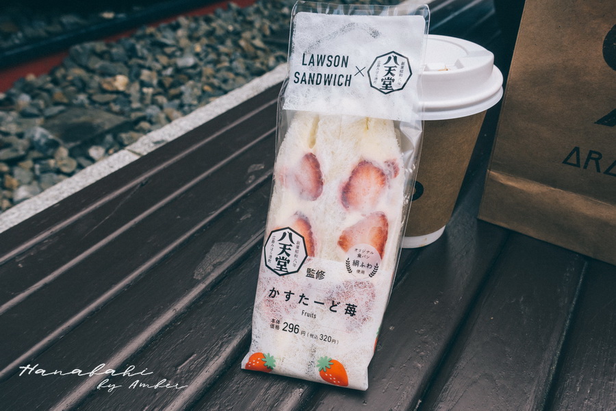 逛LAWSON超商時,不小心在架上看到了一直想吃的水果三明治。這是跟廣島八天堂合作推出的季限商品,因為去年去廣島時,有特別繞去八天堂買美味的爆餡餐包吃看看,對這溫馨小店特別有好感,所以一看到是八天堂監製就忍不住買一個來嘗嘗!