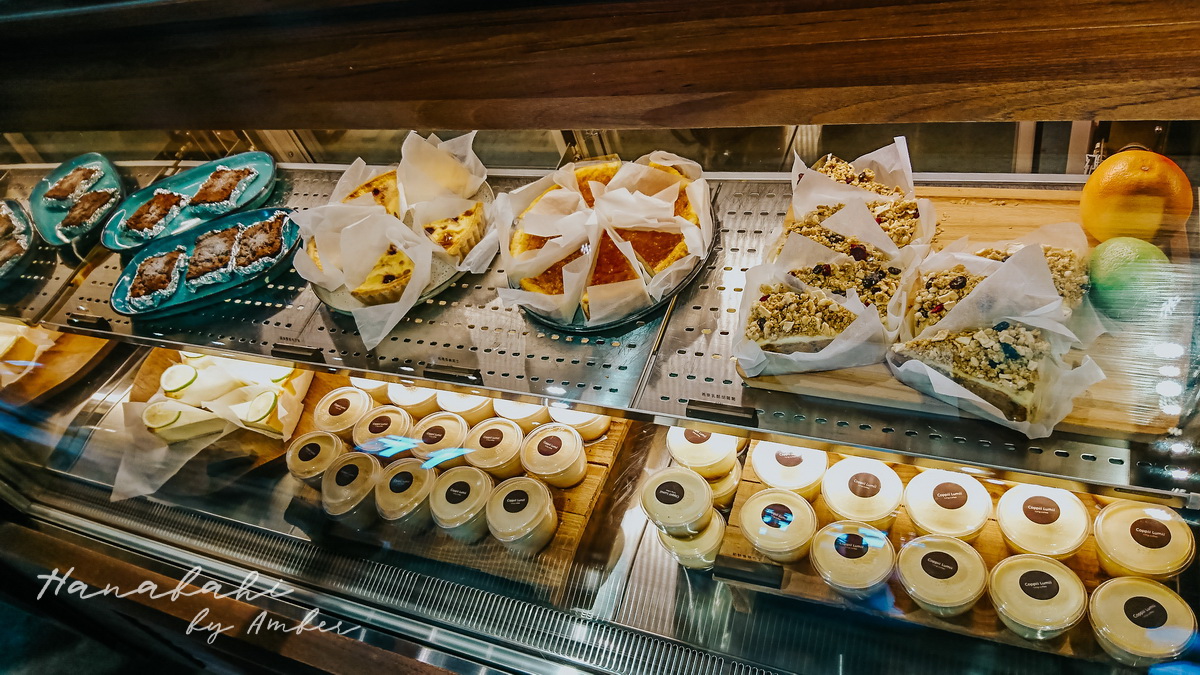 甜點櫃在點餐櫃臺旁,所以邊排隊時可以看看有沒有想點的點心。這裡的甜點都切的非常大塊且厚,光看就非常有飽足感。一開始對右上少見的胡蘿蔔乳酪蛋糕非常有興趣,但後來還是招架不住肉桂卷的誘惑改了它,肉桂卷則是這裡的招牌,愛吃的人一定要嘗看看。