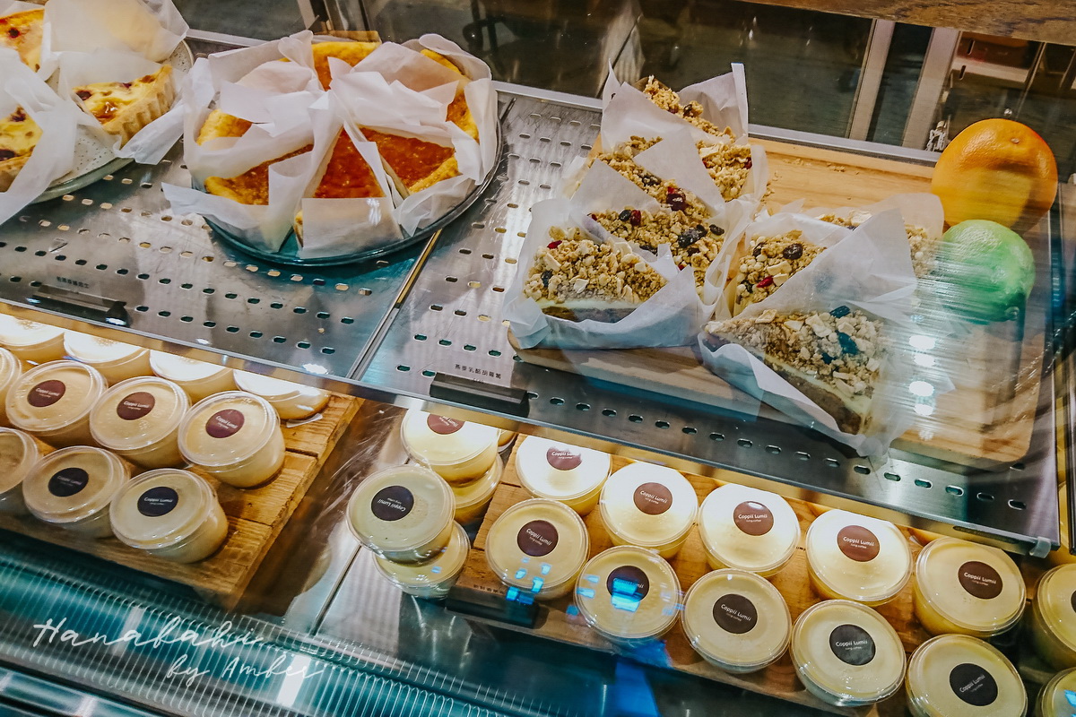 右上是燕麥乳酪胡蘿蔔蛋糕,這也是很多人會推的一款甜點,奶油磅蛋糕體裡面有很多核果與果乾還看的到紅蘿蔔細絲,不過因為真的切得超細,所以吃的時候不會感覺到紅蘿蔔的存在,而乳酪夾層與淋面讓整塊蛋糕口感很濃郁還多了點乳香,至於整體熱量…..這點就當作沒看到吧(大笑),不會甜膩加上口感層次很豐富,是很耐吃的一款鄉村風格蛋糕,個人蠻喜歡的。