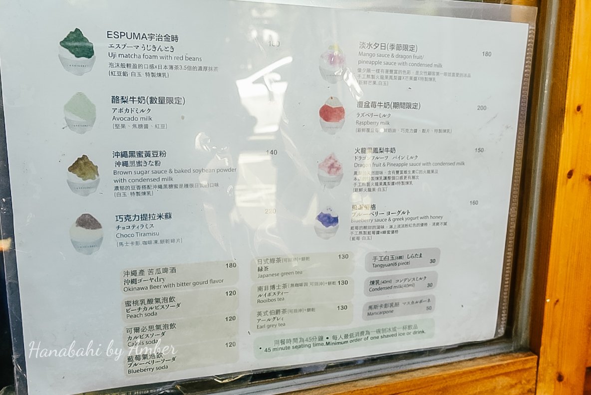 對了,店內有限時45分鐘的用餐時間,也有每人一份冰品或飲品的低消,不過由於坐在戶外座比較熱,為了不要讓冰化成水,所以其實不用20分鐘的時間就能KO一碗冰惹~~~
