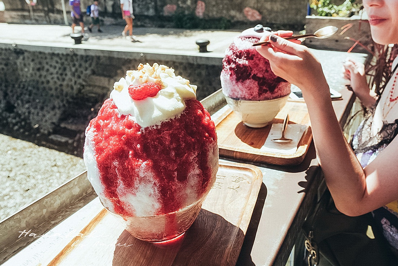朝日夫婦的冰品,除了都會使用新鮮的水果自製熬煮淋醬外,還會去日本考察冰品相關的展覽。在沖繩居住過的他們,因為想陪孩子的時間更多一點的關係而回來台灣創業,這間冰店誕生的靈感也來自於他們所居住過的沖繩;淡水這裡有點遠離塵囂又能看見海的氛圍,還真跟沖繩有這麼一點點像呢!