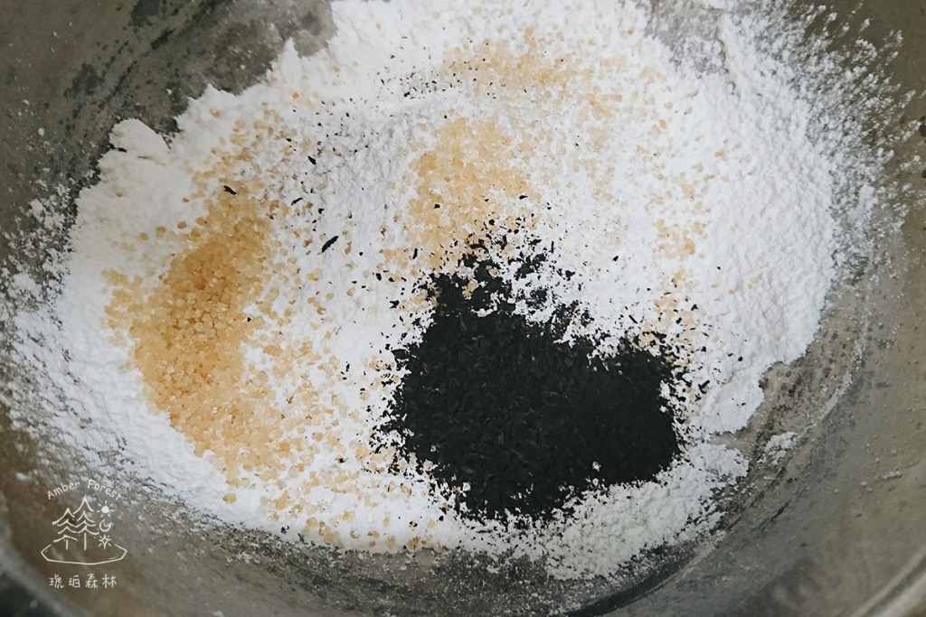 1.先將豆漿加熱後關火,倒出需要的分量至杯子再加入乾性材料裡的紅茶葉(未磨碎)浸泡一陣子待涼後再使用。這個步驟是為了讓紅茶的滋味在烤過後更明顯而增加的前置作業。