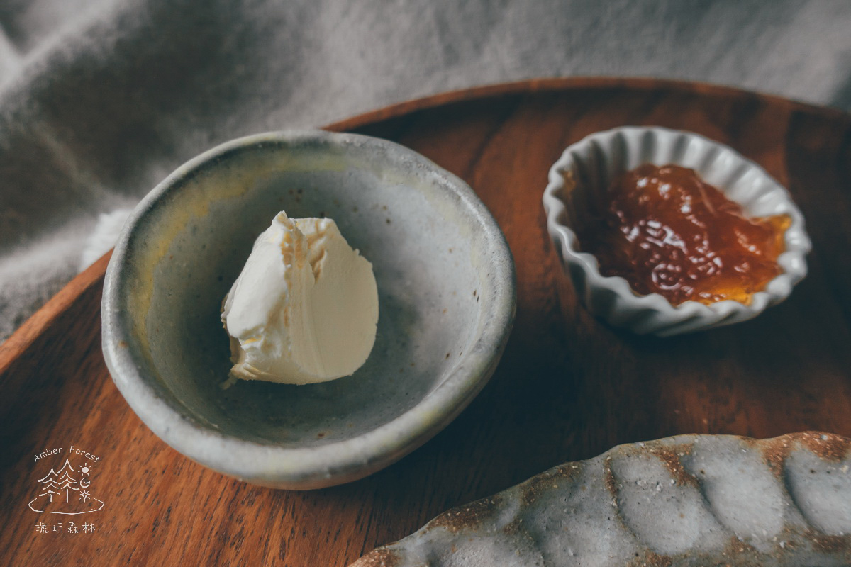 剛烤完後,自己就先偷吃了一個沒包餡的,因為香氣四溢的茶香太誘人啦。我在橫剖開的司康中間夾入跟紅茶很搭的柑橘果醬還有少許的奶油乳酪;柑橘的酸甜能帶出紅茶的香氣,也能中和奶油乳酪的濃厚口感,所以吃起來很清爽。而紅韻紅茶本身的味道也都有保留住,在口中散發的芬芳的氣息讓人忍不住閉眼仔細品嘗。